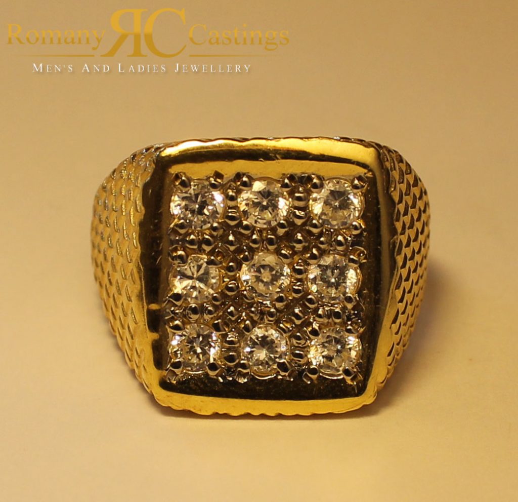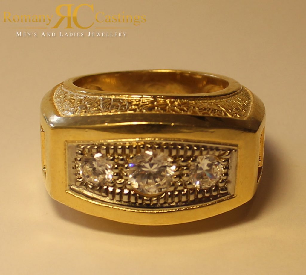 Men’s CZ Gypsy Set Ring 925 Sterling Silver Polished 19.2g Dipped in 9ct Gold.Min Size V