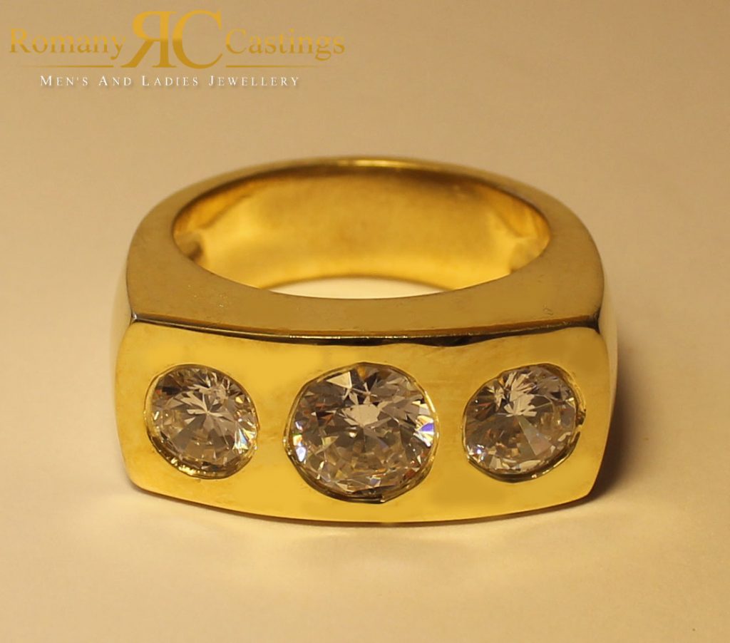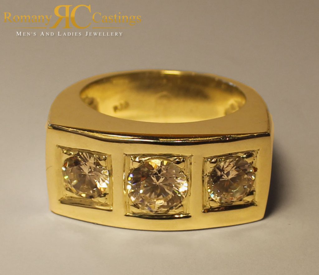 Men’s CZ 3 Stone Set Ring 925 Sterling Silver Polished 11.3g Dipped in 9ct Gold Min Size V