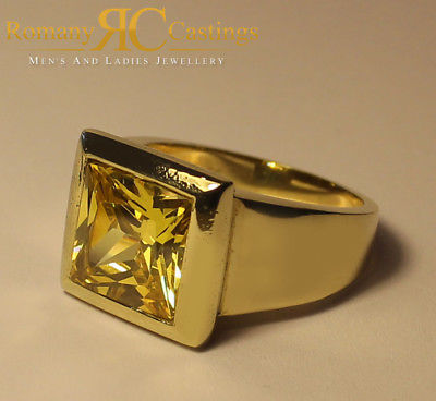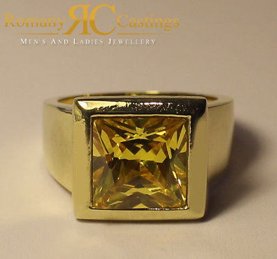 Designer Style Unisex 925 Sterling Silver 5.62ct CZ Citrine Yellow Princess Cut (10mm)Comfort Fit Ring Dipped in 9ct Gold 12.39g Max Size Z +1 This stunning Ring has beautifully hand finished details the ring is solid silver, giving it a rich and bright silver colour. We can offer this item at 50% of the high street price. A perfect gift for Any Occasions So now you can treat the Person in your life or just treat yourself. (All weights are approximate). The ring is brand new and will come hand polished in a stylish soft suede gift pouch. Delivery: Please allow 14 days for dispatch as items are made to order. Romany Gold use only first class postage Recorded delivery (UK Mainland only via Royal mail), we are UK based sellers and your item will be dispatched within 14 days of full payment being received. After Care: The best way of take care of your Silver Jewellery is to regularly clean the jewellery with a Silver liquid cleaner. The most common and most effective is ‘Silver Clean’. Simply dip your silver item into the liquid for a few minutes and repeat as necessary to help keep your silver jewellery in optimum condition.